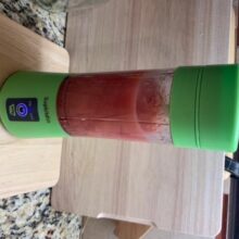 Our 13-Ounce USB-Rechargeable Fruit Blender is powered by a built-in, rechargeable 2000mAh 3.7V. Each blender comes with a USB cord for your convenience: you can charge your blender up from your laptop, a portable power bank, car port charger, or outlet charger. It’s just the ultimate convenience for you to enjoy your favorite drink wherever you are.
