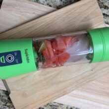 The best part about our blender? It’s small and portable — you can carry it with you anywhere. Plus, the blender, when detached from the blender chamber, doubles as a drink cup! No bulk makes this device great for camping trips, picnics, beach trips, and more.