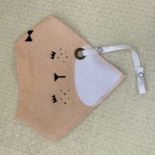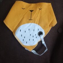 Each bib measures 7 x 15 x 13 inches (L x W x H) and comes in a choice of beige, pink, yellow, green, and grey. Each color features a different friendly animal face.